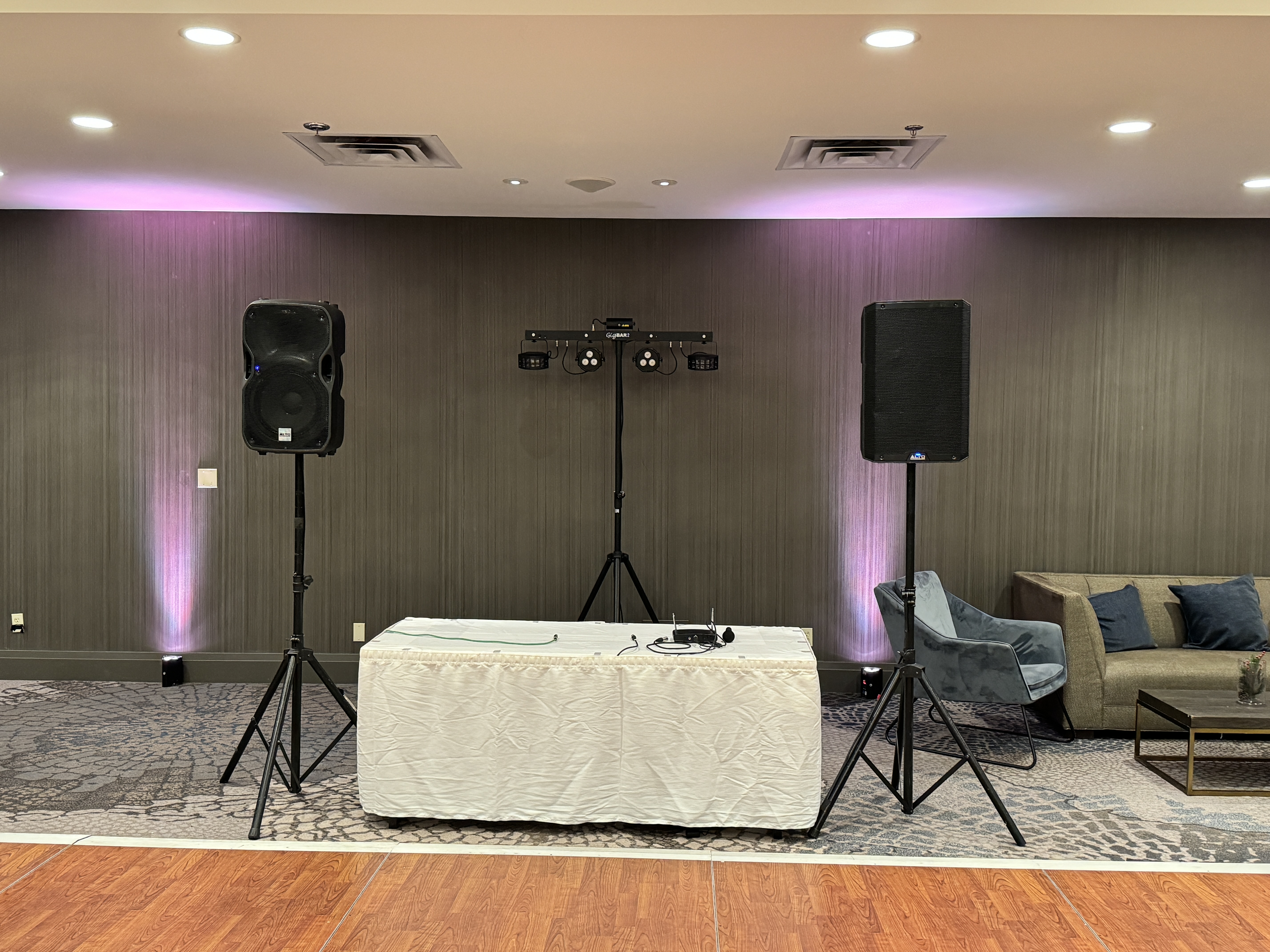 Your employees work hard for you year round. So let us give them the laughter and good time they deserve! Our extremely knowledgable DJ's know how to get your crowd singing and dancing all night. Our custom coloured uplighting packages can transform your room into a wonderland and don't forget about the indoor fireworks and dry ice machines.....
